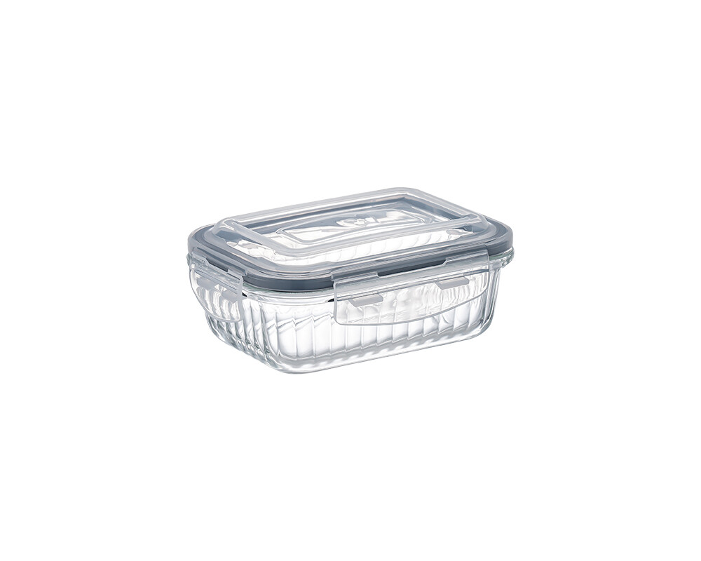Geriffelter Aufbewahrungsglas Rechteckig mit Silikondeckel 400 ml